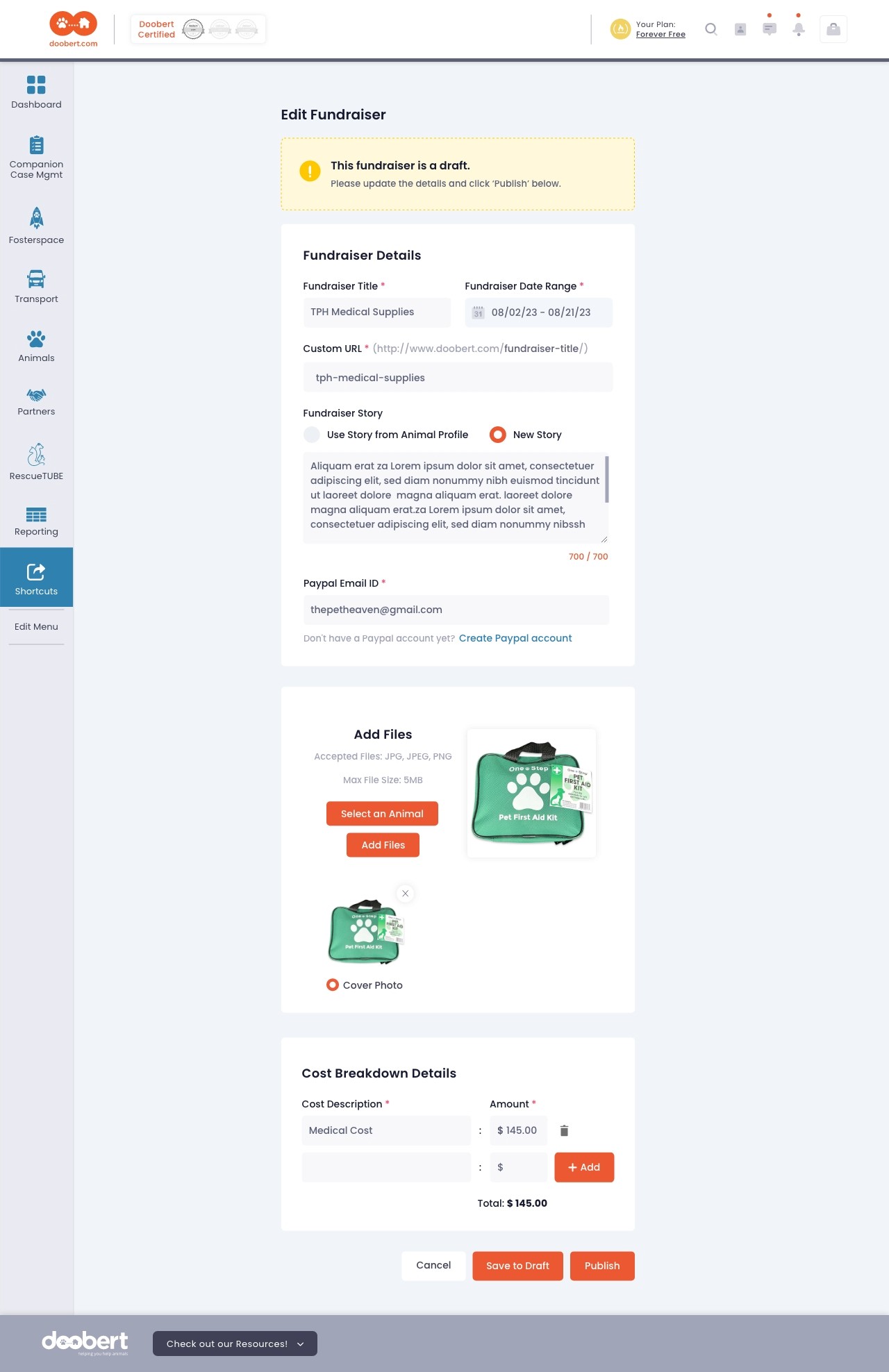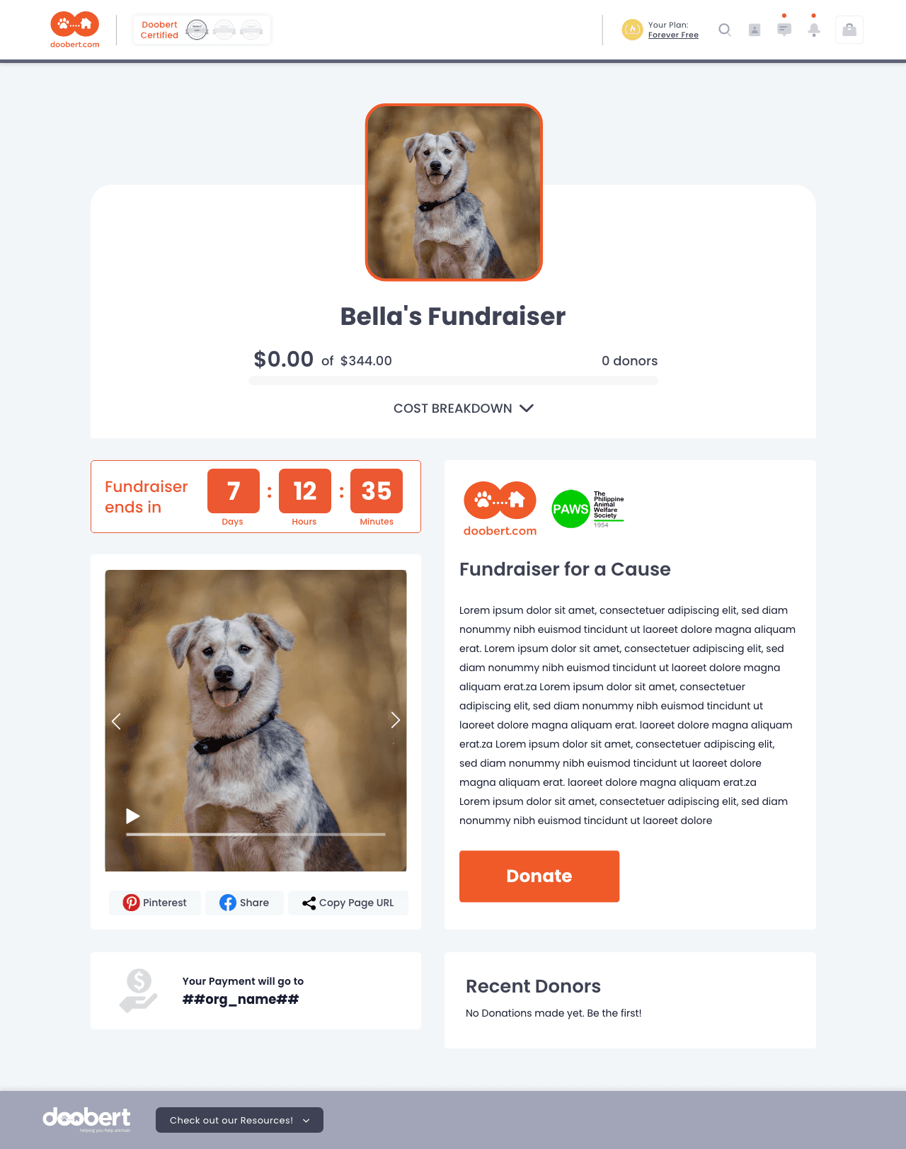 The Doobert Fundraiser redesign was a meaningful project aimed at supporting a platform that helps rescue animals find safe transportation and care. My goal was to create a cleaner, more engaging layout that makes it easy for users to understand the cause and feel encouraged to donate.